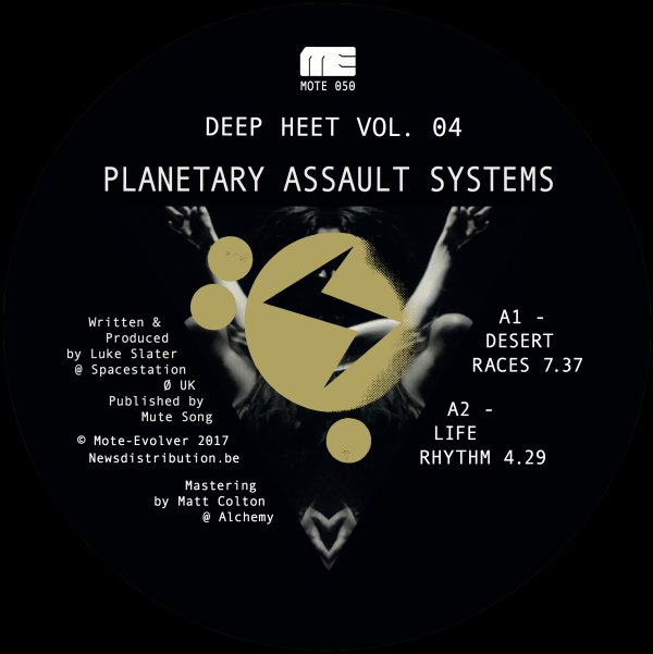 Since 2006, the Deep Heet series of recordings has shown the public an especially distinctive side of the production work of Planetary Assault Systems. With a unique ‘engine room’ ambience and a focus upon maintaining a continual surge of pure energy, each volume in the Deep Heet collection has lived up to that title, subtly suggesting the kind of sustained and voluntary temperature rise that has traditionally given way to spiritual or visionary experiences. Just check out tracks such as “Flat Tire” from Volume 3, with its hard percussive edge accompanied by a pervasive hiss like boiling matter changing into gas. P.A.S. helmsman Luke Slater also thinks highly enough of this series to re-work tracks like “Whistle Viper” in recent live sets, or to offer up others (e.g. “Raid”) for remixing by Mote-Evolver allies.