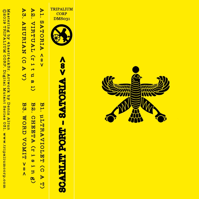 Scarlit Port is a Berlin-based producer who has released some mad stuff on NURSE, Brokntoys (a split EP with Identified Patient) and Monolith Rec. For his new EP “Satoria” on Tripalium Corp, he composed six tracks “from the ancient contemporary future”. Influenced by Space Age Music, Joris-Karl Huysmans, Slayer, 60s/70s Persian Pop and Technical Analysis, the sounds of this EP will destabilise binary thinking.